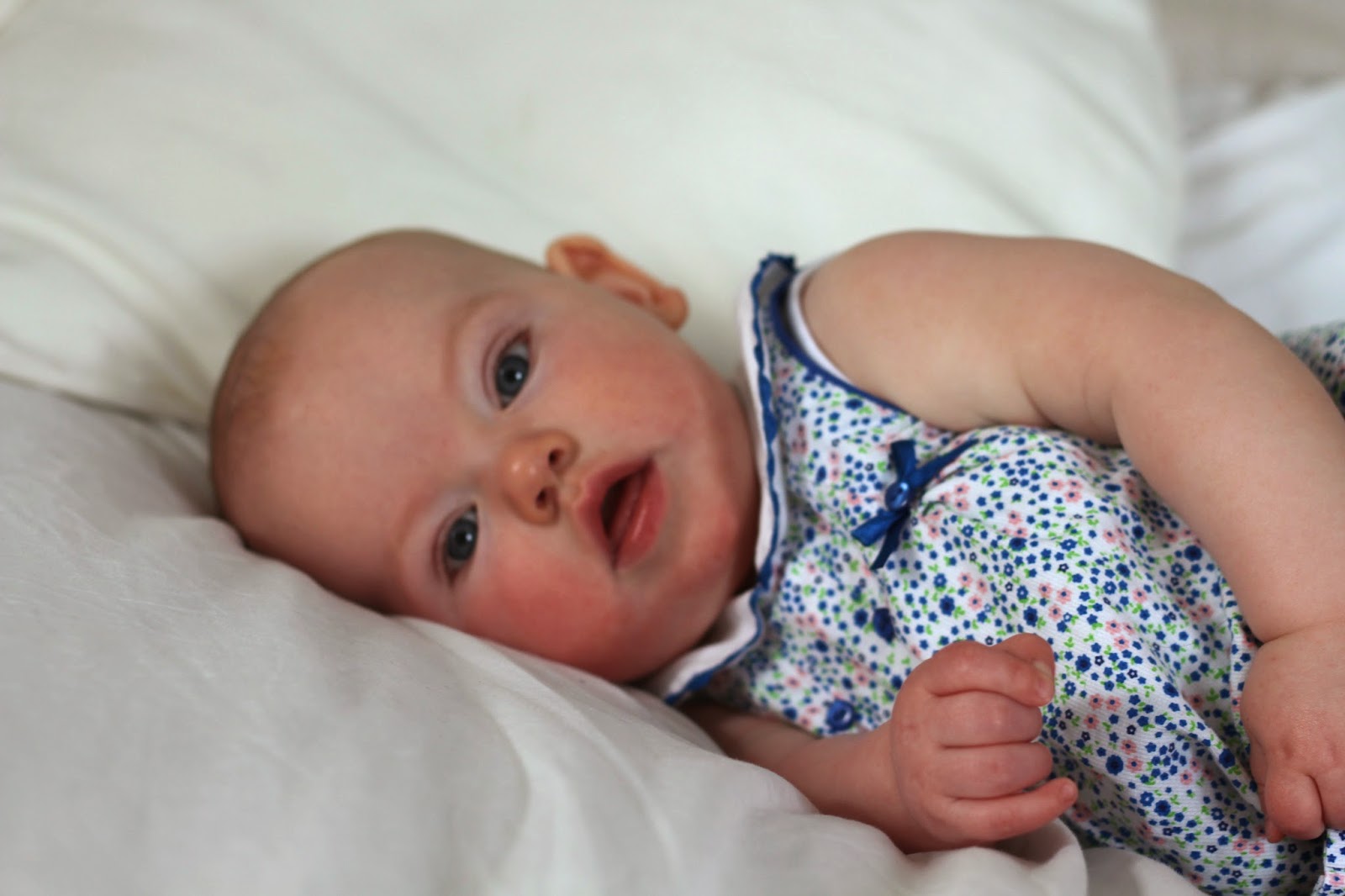 Rosalie is still having for breast feeds a day. The first when she wakes up, the second around 11am, The third between 2 and 3pm and the last one at 6.30pm before bed.