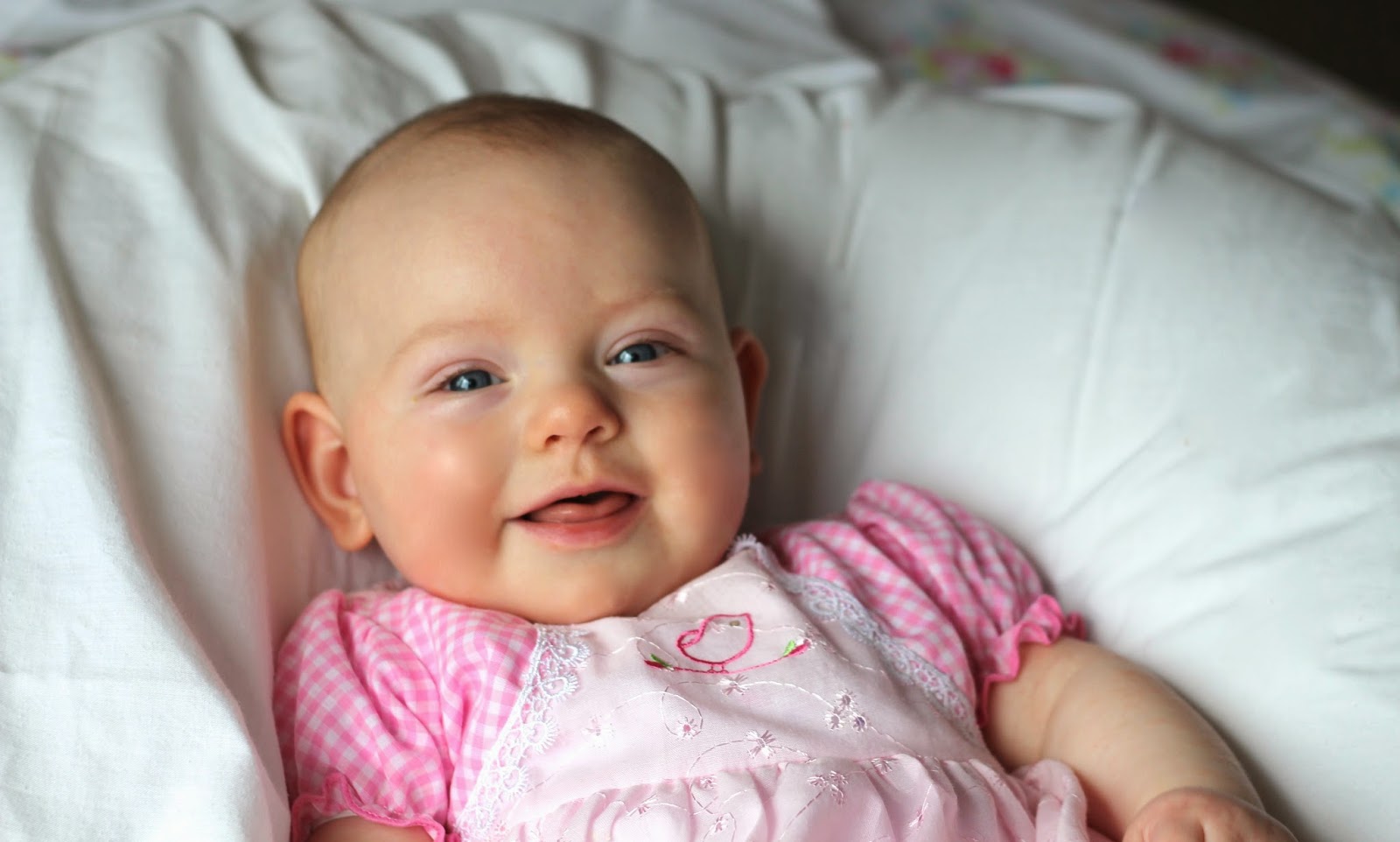 Grabbing and picking up things – She picks up her toys and plays with them. She can transfer things from one hand to the other. She can take her dummy out and put it back in again all by herself.Raspberries – Rosalie has learnt to blow raspberries! She does this a lot.